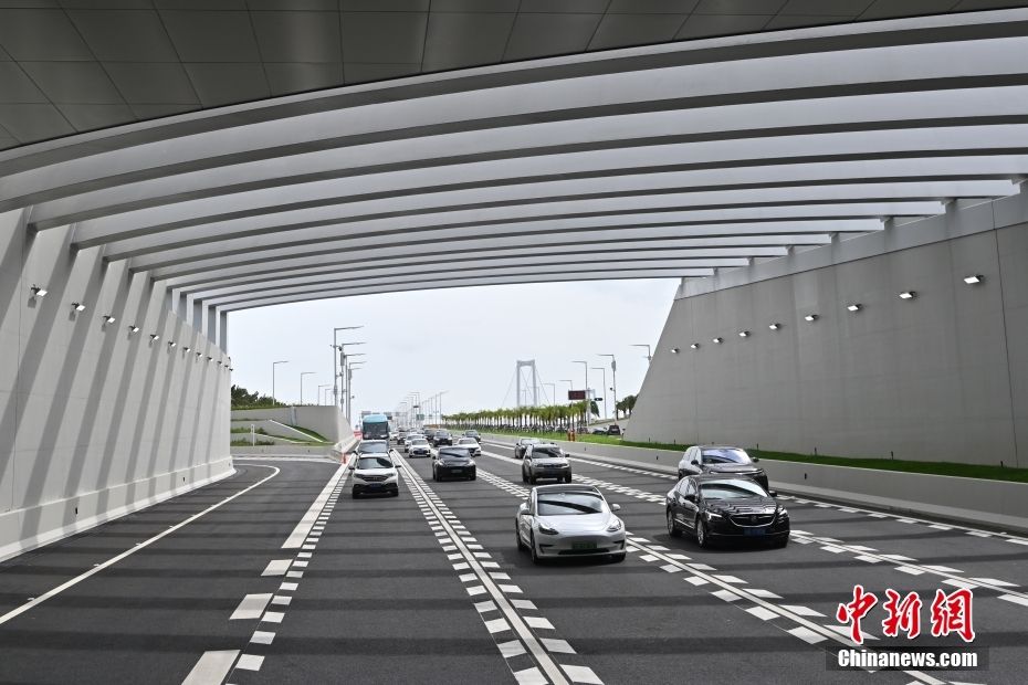 图为广东深圳,车辆行驶入深中隧道。(图片均据中新网)
