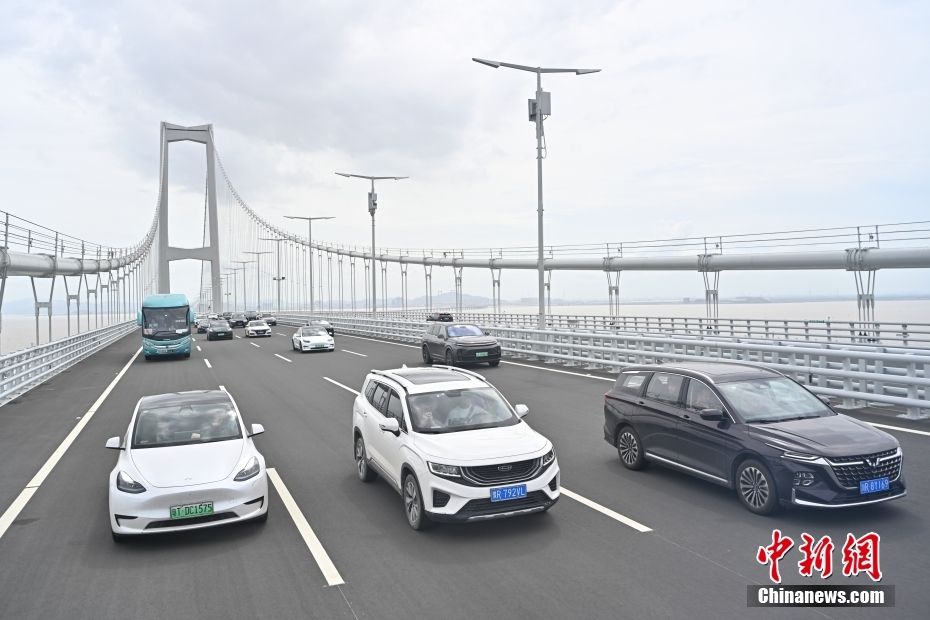 图为广东中山,车辆行驶在深中大桥上。