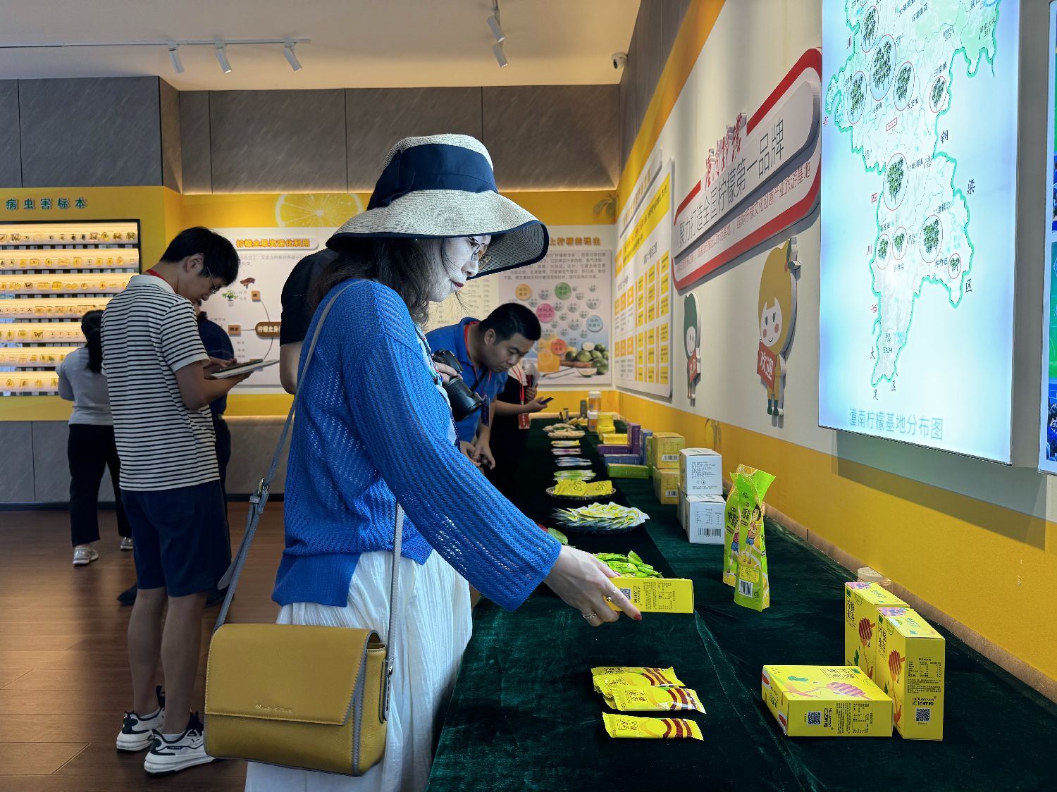 参访团了解柠檬深加工产品,包括饮品、果胶、精萃液、即食片等。