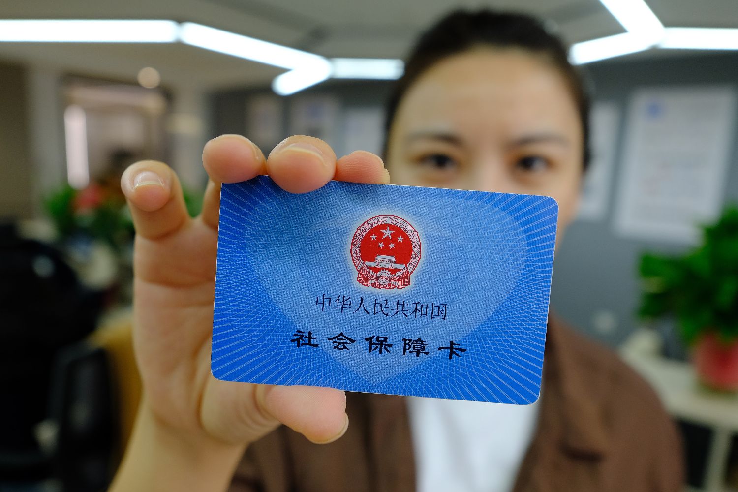 2021年4月26日,江苏省南京市,一位市民展示社会保障卡。(图片来源:本文图片均来自中新社)