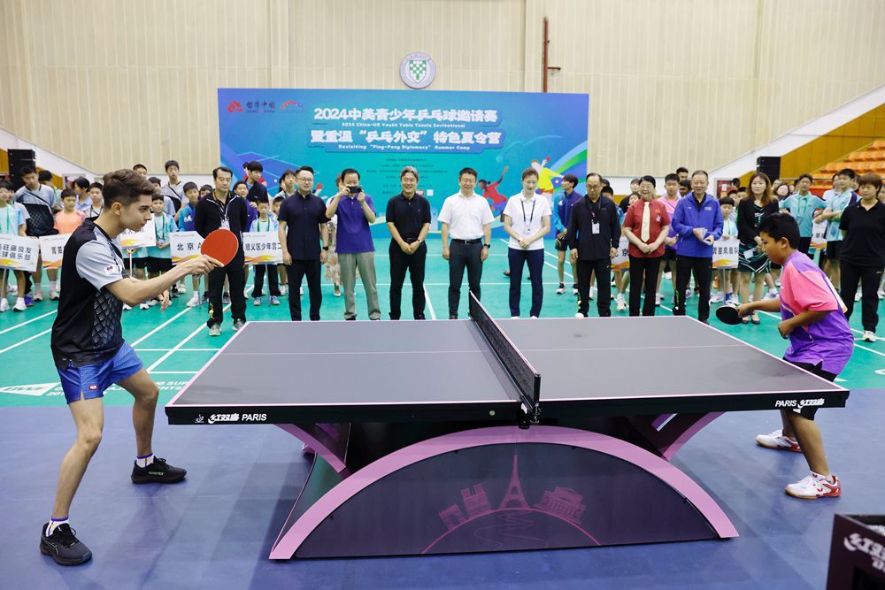 中新社报道,53年前,小小乒乓球转动“大球”,打破中美两国相互隔绝的坚冰。今年正值中美建交45周年,2024中美青少年乒乓球邀请赛暨重温“乒乓外交”特色夏令营7月13日在北京语言大学开幕,来自中美多个乒乓球俱乐部的青少年书写着“乒乓友谊”的新故事。