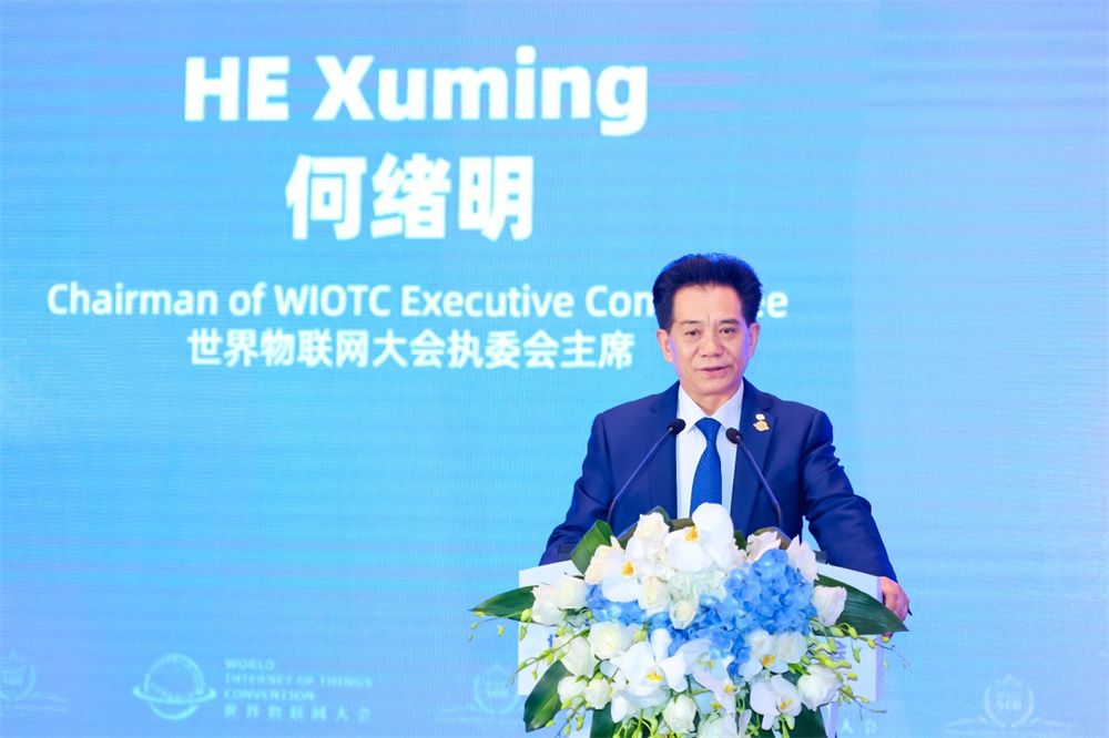 世界物联网大会执行主席何绪明作主题报告。(图片来源:主办方供图)