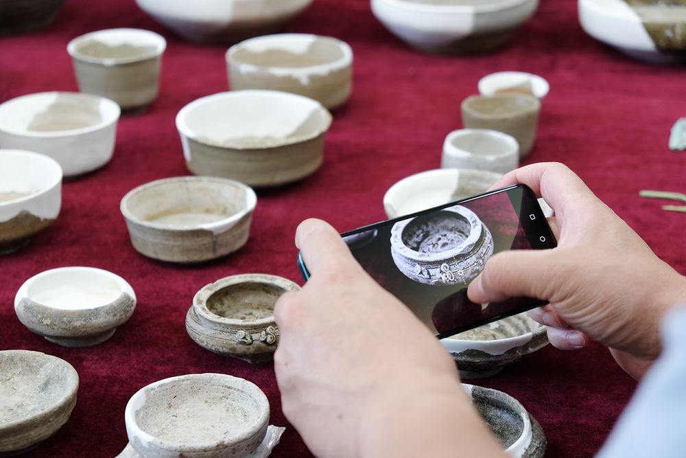 图为7月23日展示的出土陶器。