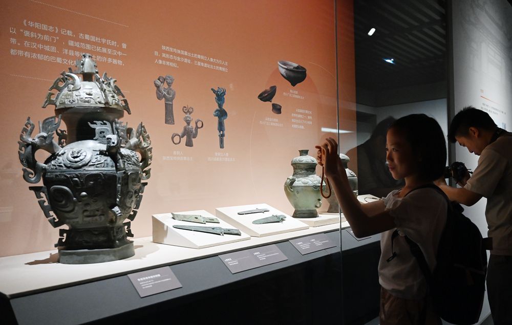 7月28日,“雄关古道经纬中华——大蜀道上的天地人与中国精神”特展在四川博物院开展,图为观众在展览现场参观。(图片来源:中新社)