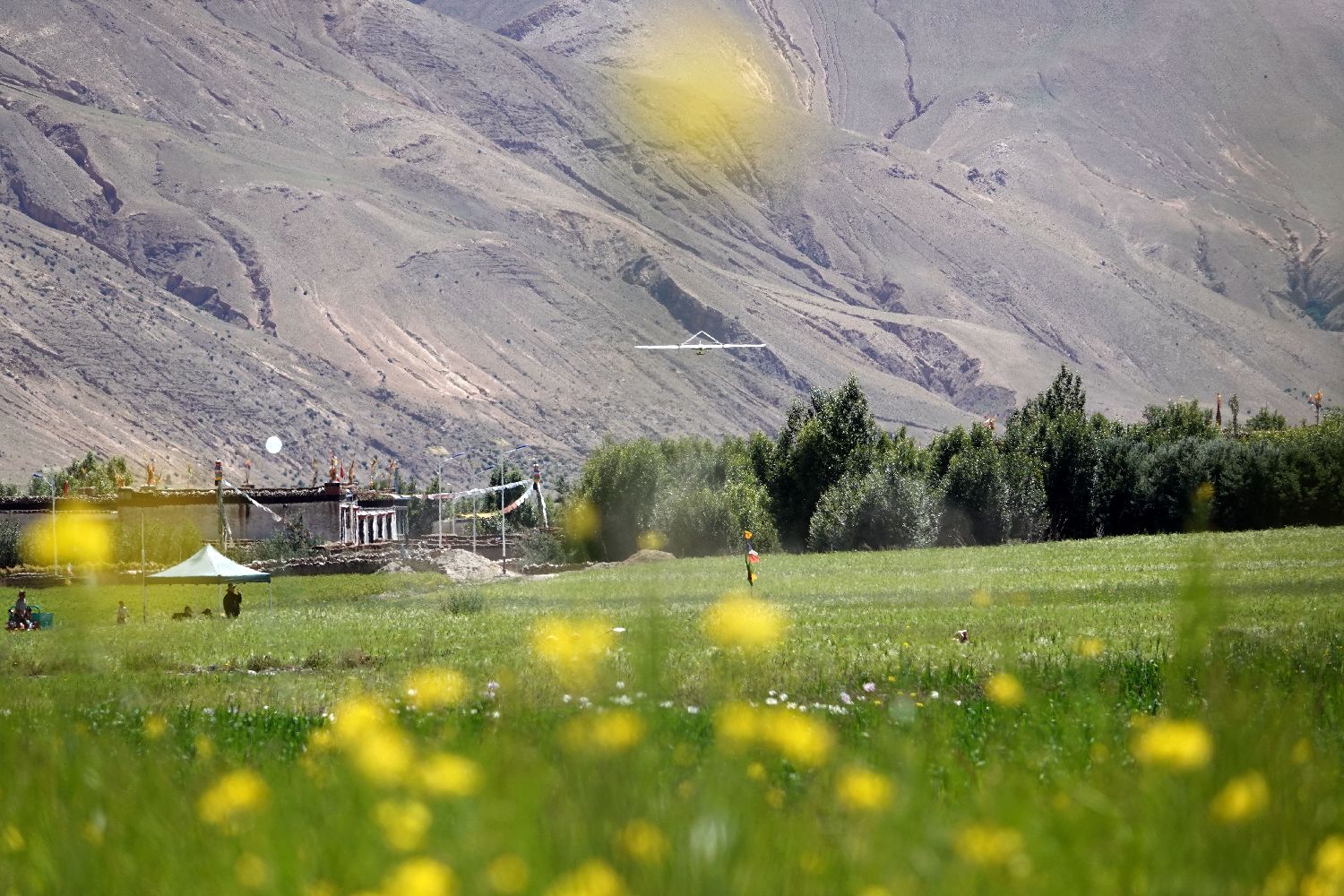 8月1日,作为二次青藏科考一项重要组成部分,珠峰地区首次开展的航空平台水-热-碳通量观测试验正式启动,图为无人机起飞开展观测。