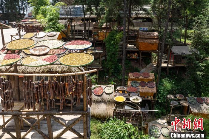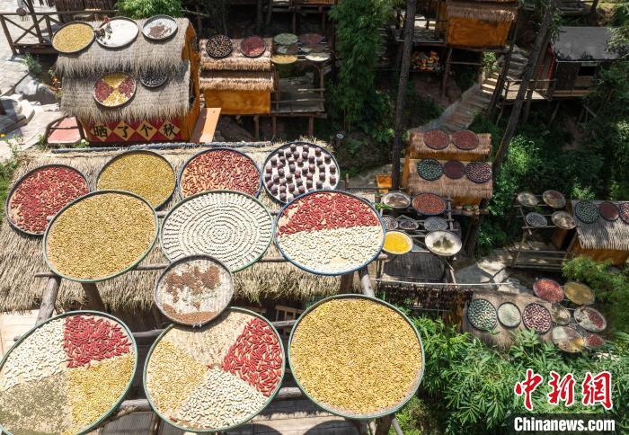 图为8月7日,航拍重庆美心红酒小镇打造的“晒秋”景观。