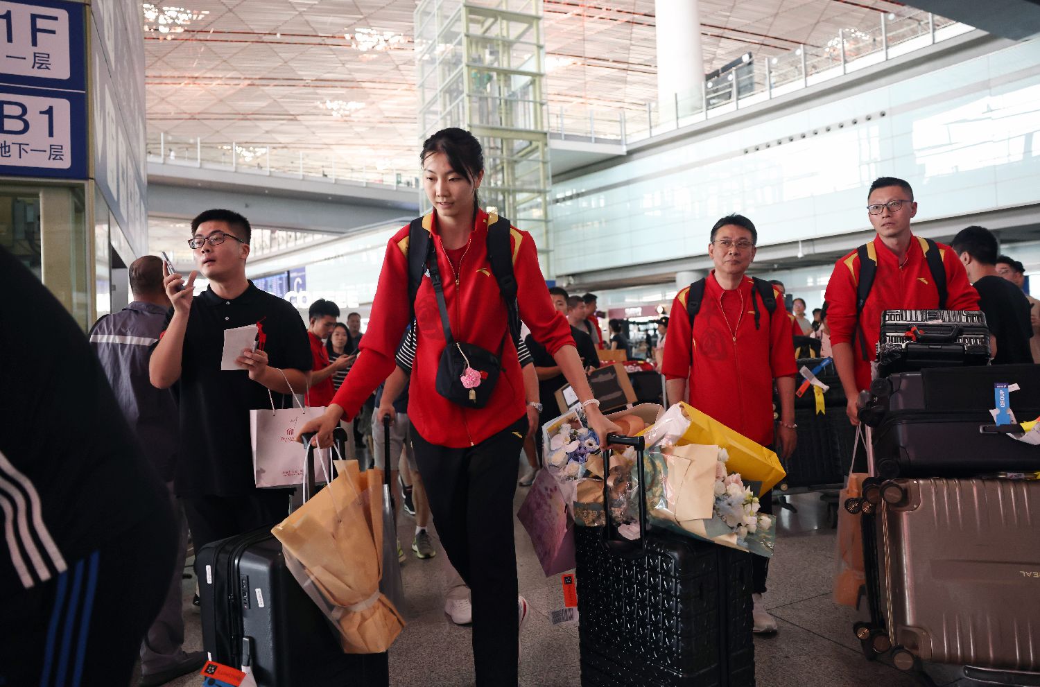 北京时间2024年8月8日,中国女排结束2024年巴黎奥运会之旅,运动员们返回北京。