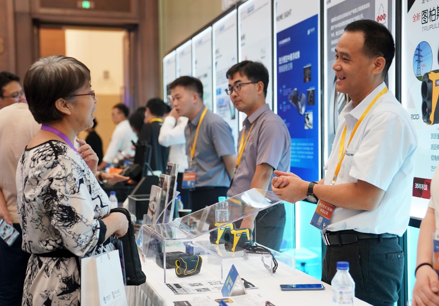 8月8日,展商工作人员(左)向采购商(右)介绍企业产品。