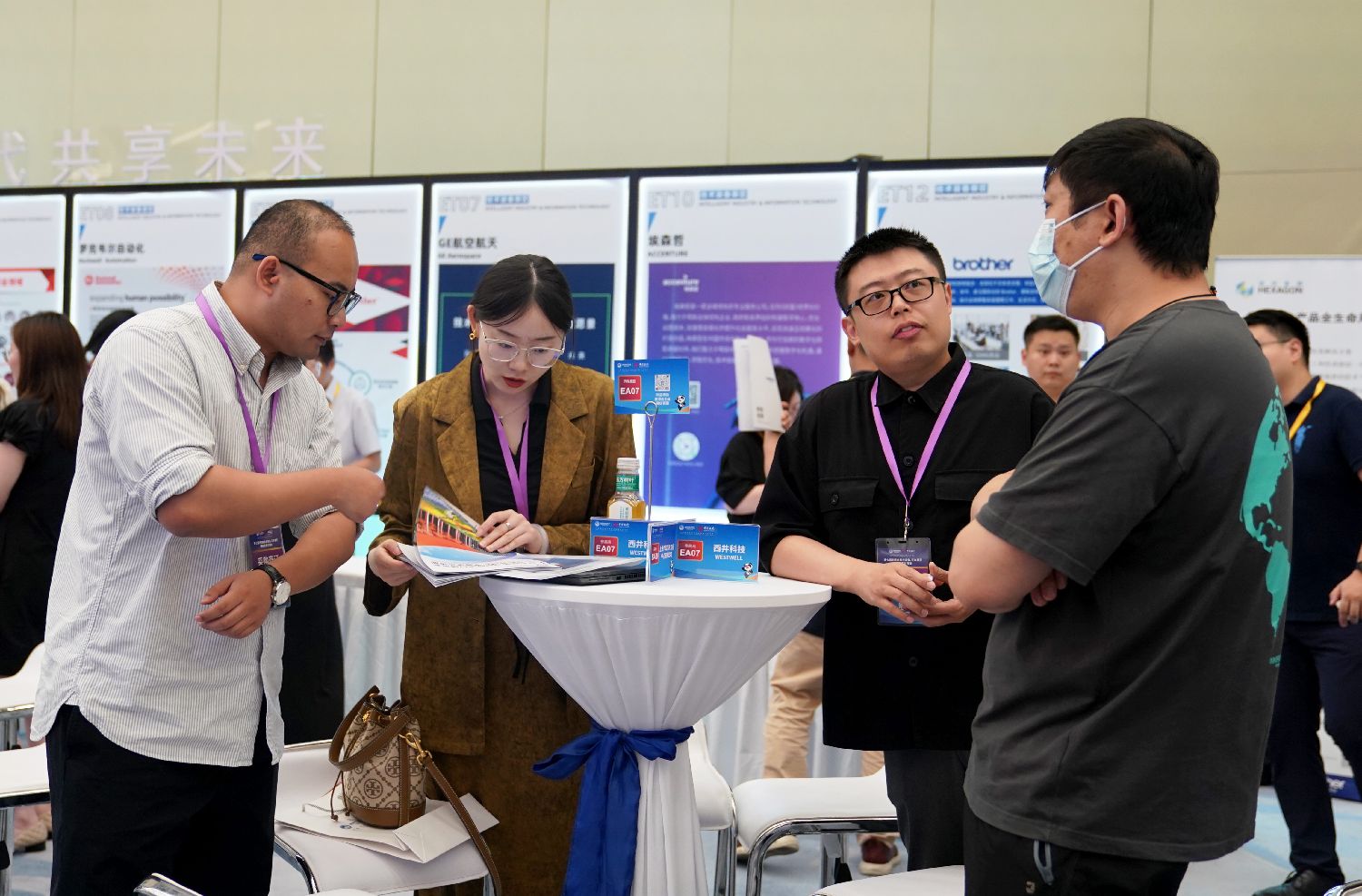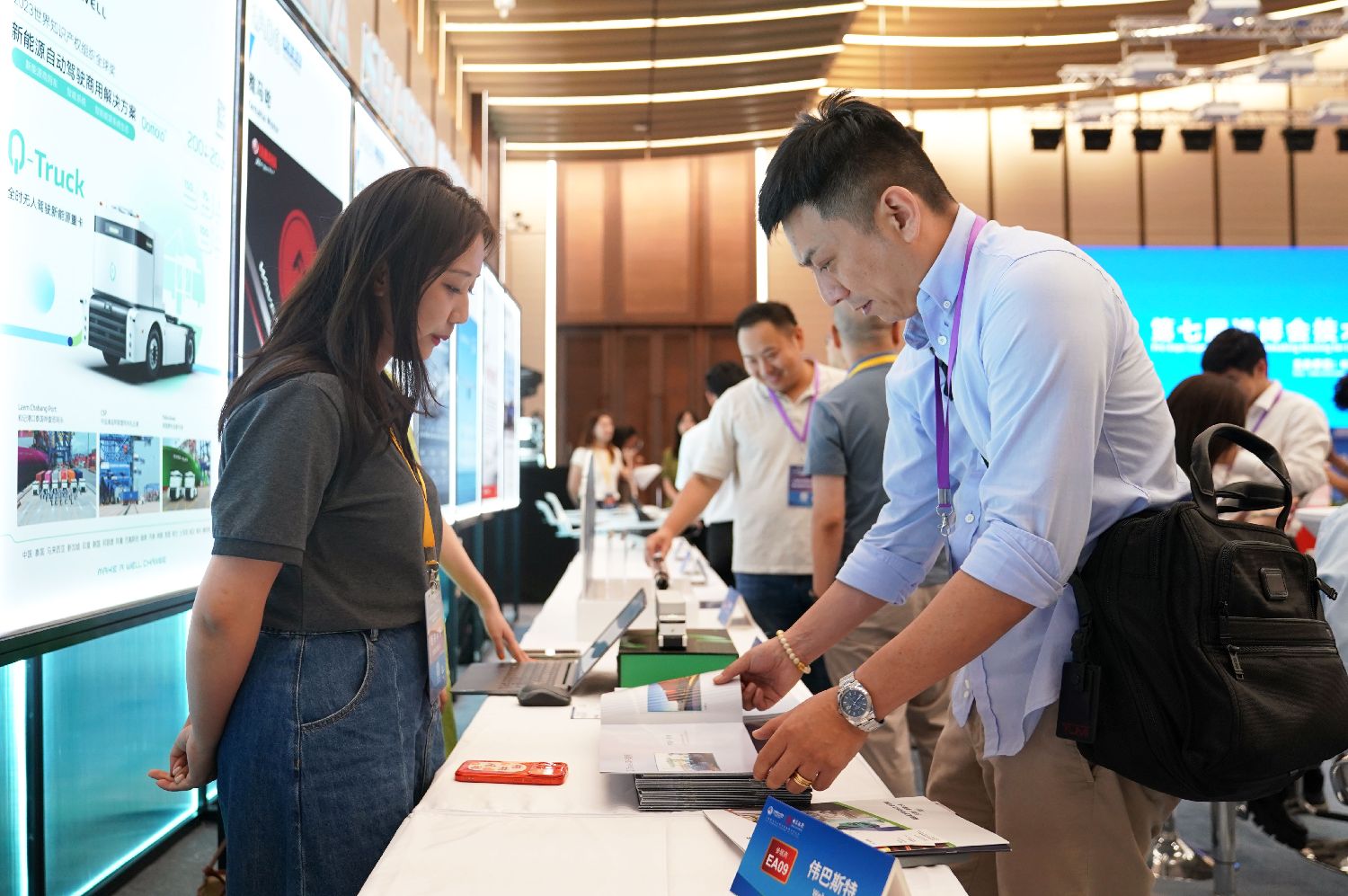 8月8日,参会者在展前供需对接会场内交流讨论。