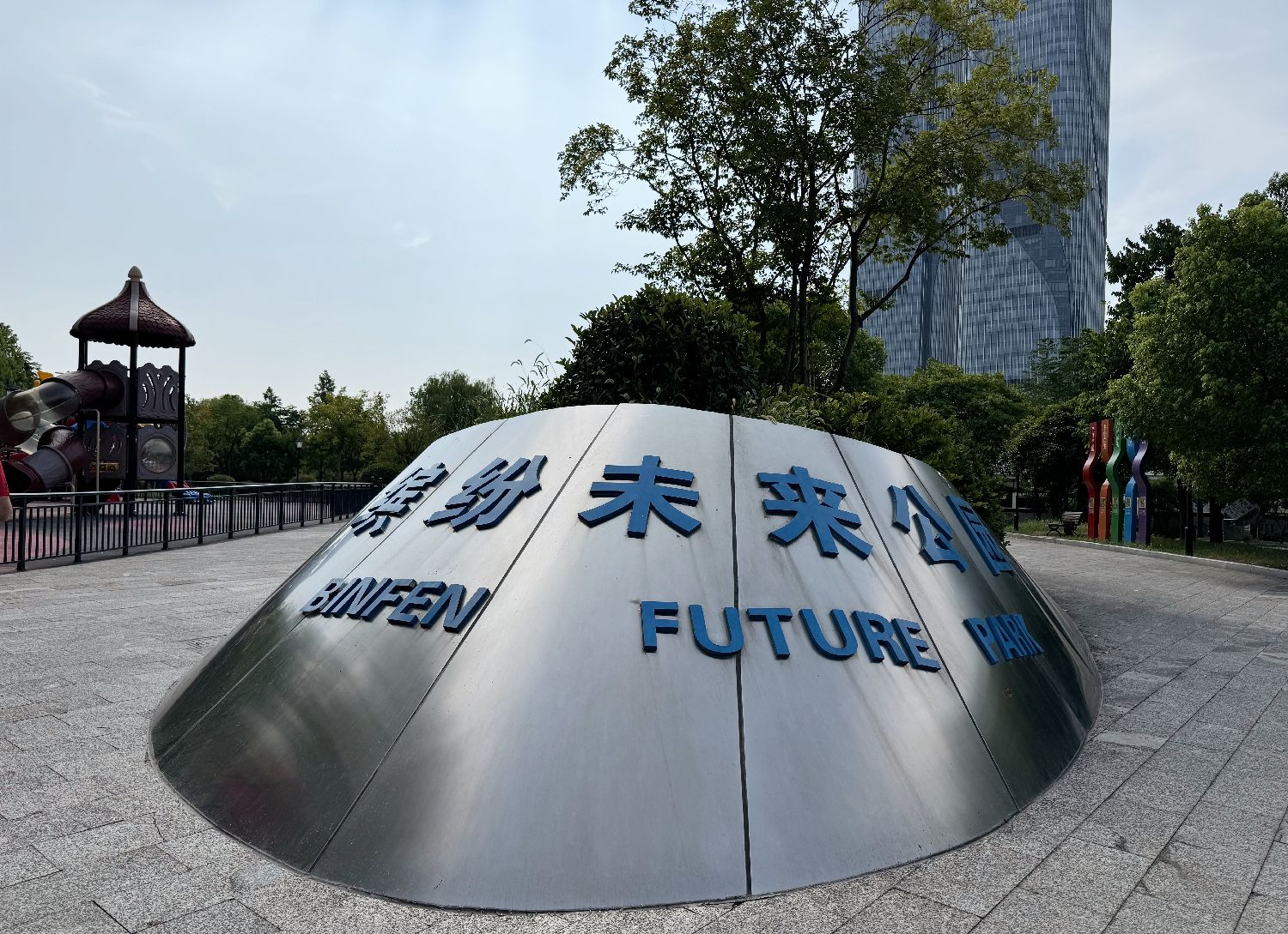 8月13日,“国际滨 江南韵”海外华文媒体采风行来到杭州市滨江区西兴街道的缤纷未来社区,感受民众“向往的生活”的样子。该社区聚焦人本化、生态化、数字化,改造老旧小区、改善交通出行、升级街道景观、提升公共服务、搭建数字平台,为居民打造缤纷多彩的生活圈,共享未来式生活。图为社区内的缤纷未来公园,以生态化理念,让自然融入社区,为居民休闲、儿童游乐、老年活动提供一大开放空间。(图片来源:本文图片均由欧洲时报特约记者顾砚 摄)