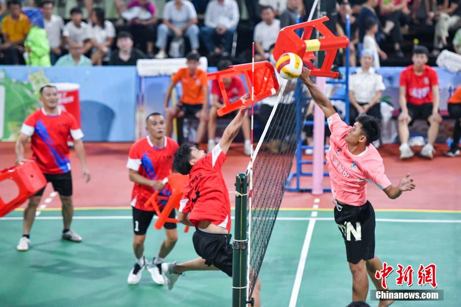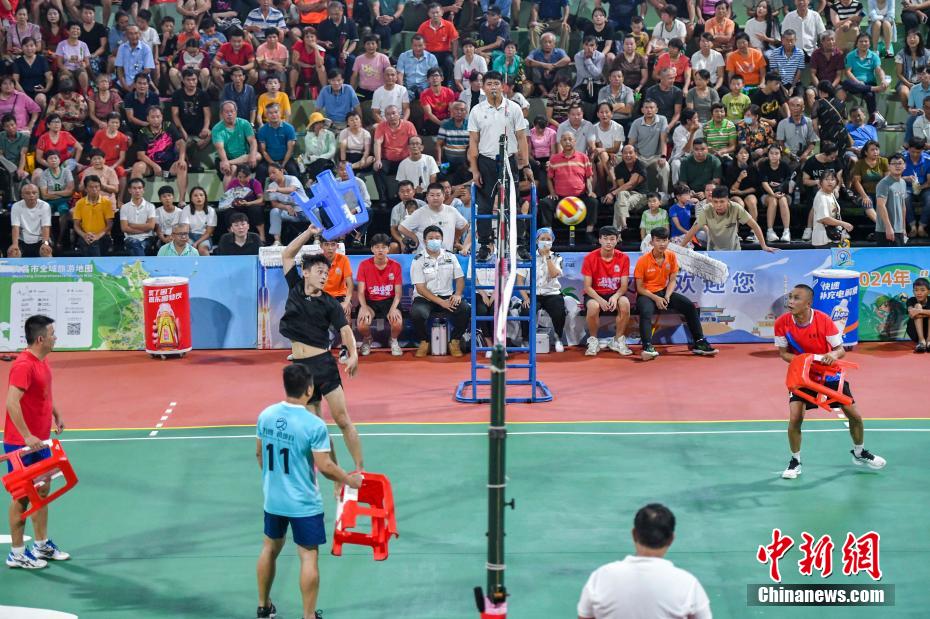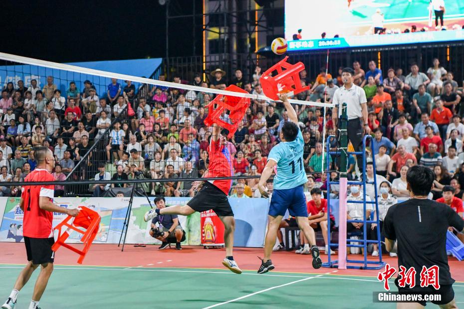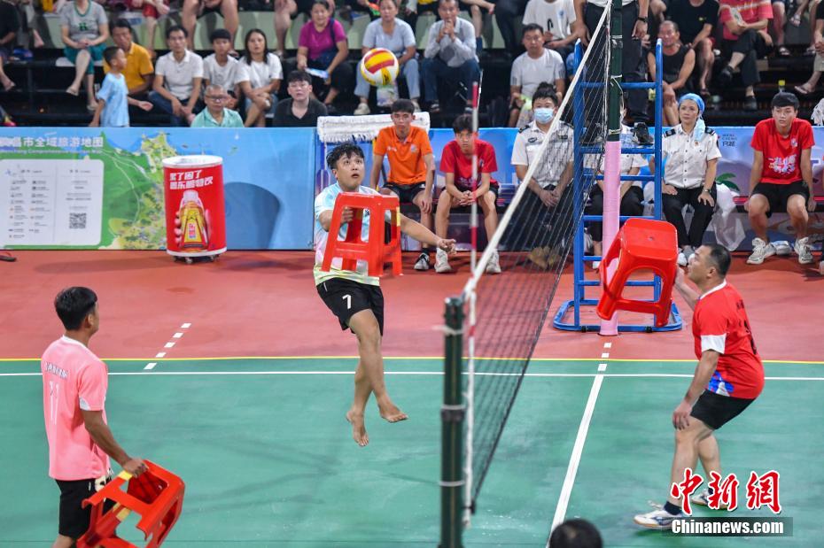 当“板凳”遇上排球是什么体验?8月17日晚,海南“村VA”3V3板凳排球总决赛在侨乡文昌上演,别开生面的板凳排球玩法让民众大开眼界。武汉游客章洋说,“这里排球文化氛围很浓厚,从中感受到了文昌人民对于排球的热爱。”