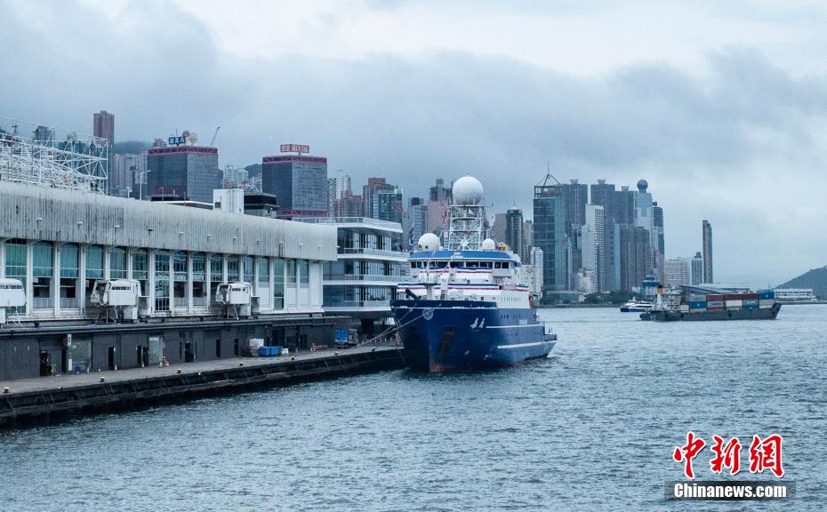 图为“嘉庚”号科考船停泊于尖沙咀码头。