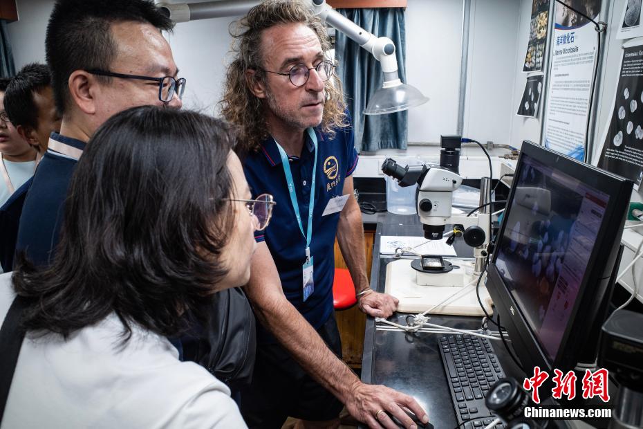 图为市民在舱内实验室参观。