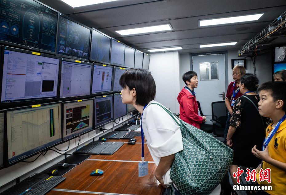 图为市民参观舱内设备。