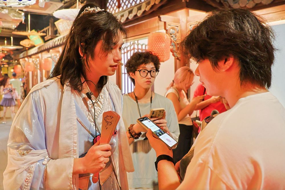 8月17日,杭州市民玩家正在与NPC进行互动答题。(图片来源:中新社/杭州西湖文旅集团供图)