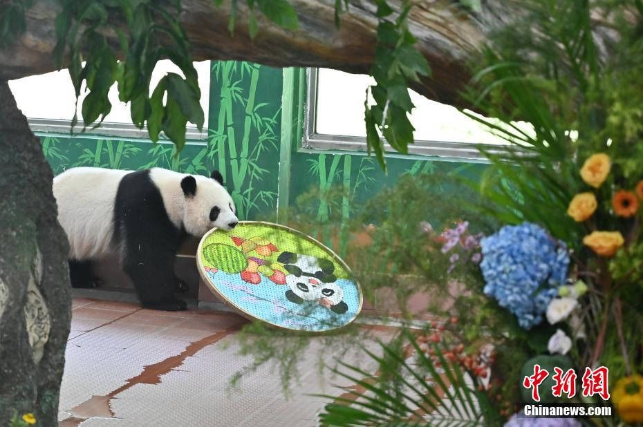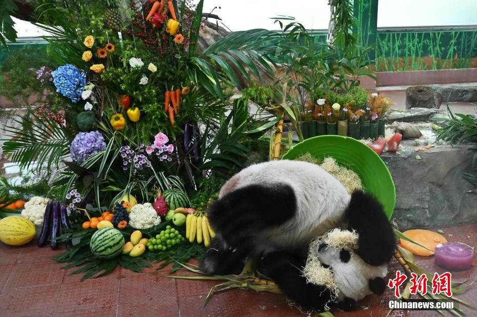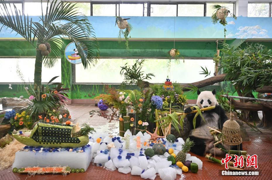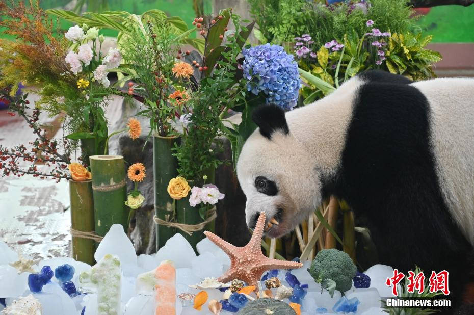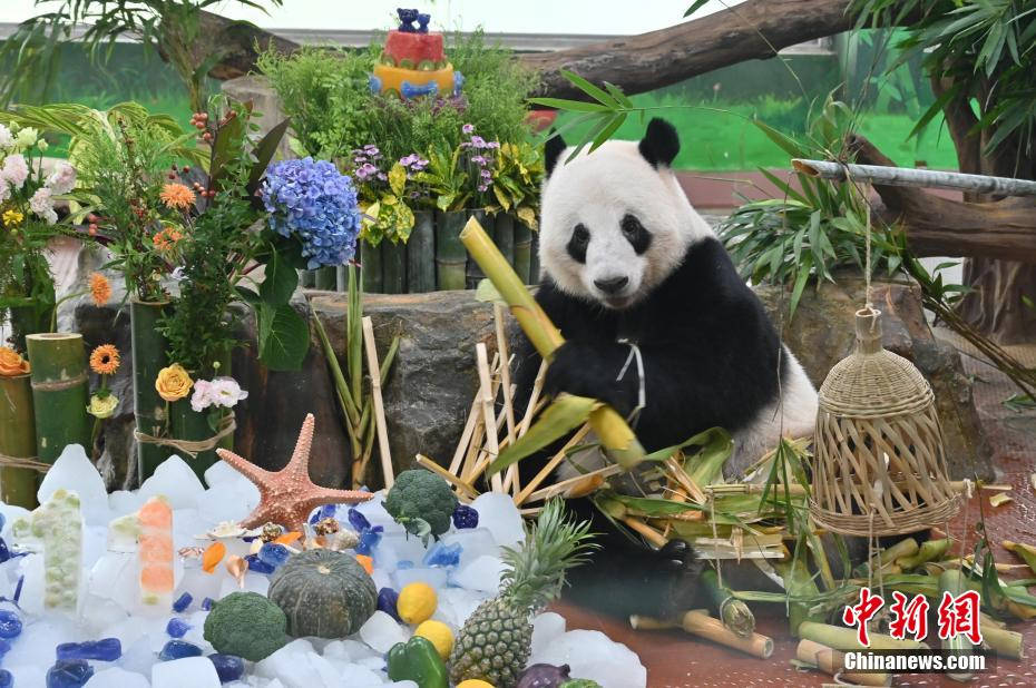 大熊猫“星一”享用生日餐。