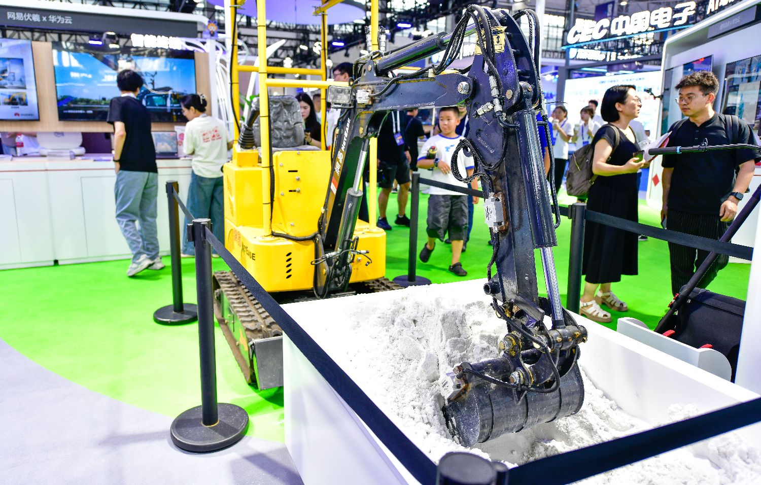 8月28日拍摄的在数博会上展出的一款智能机械设备。