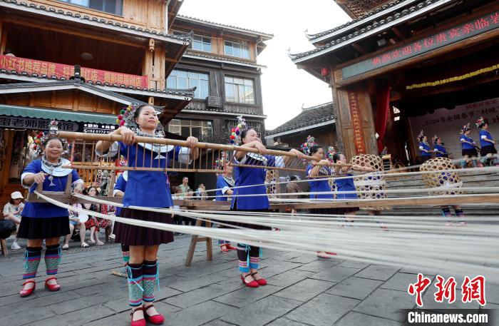 图为侗族妇女在表演侗族纺纱。(图片来源:本文图片均自中新网)