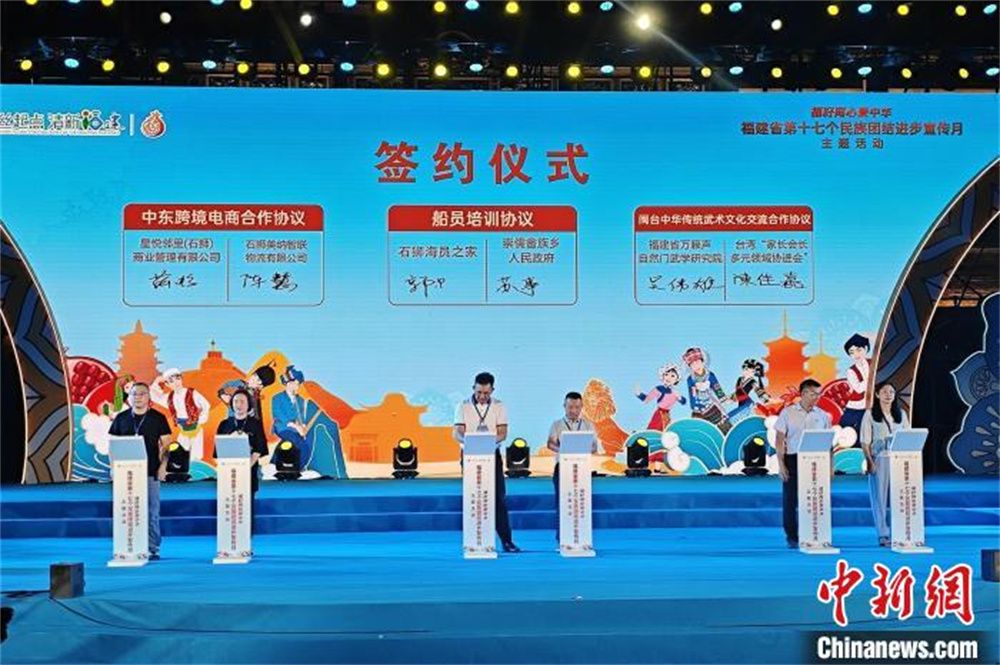 启动仪式现场,多个项目集中签约。其中,石狮市与云南、贵州等地签订劳务合作协议,促进各族群众高质量就业,推进东西部各族群众跨区域流动和互嵌式发展;由石狮少数民族船运企业家发起成立的石狮船员之家与宁德市崇儒畲族乡签署船员培训协议,为崇儒畲族乡年轻劳动力免费开展船员技能培训,带动更多农村劳动力实现技能成才、技能就业、技能致富,谱写民族乡村振兴曲。