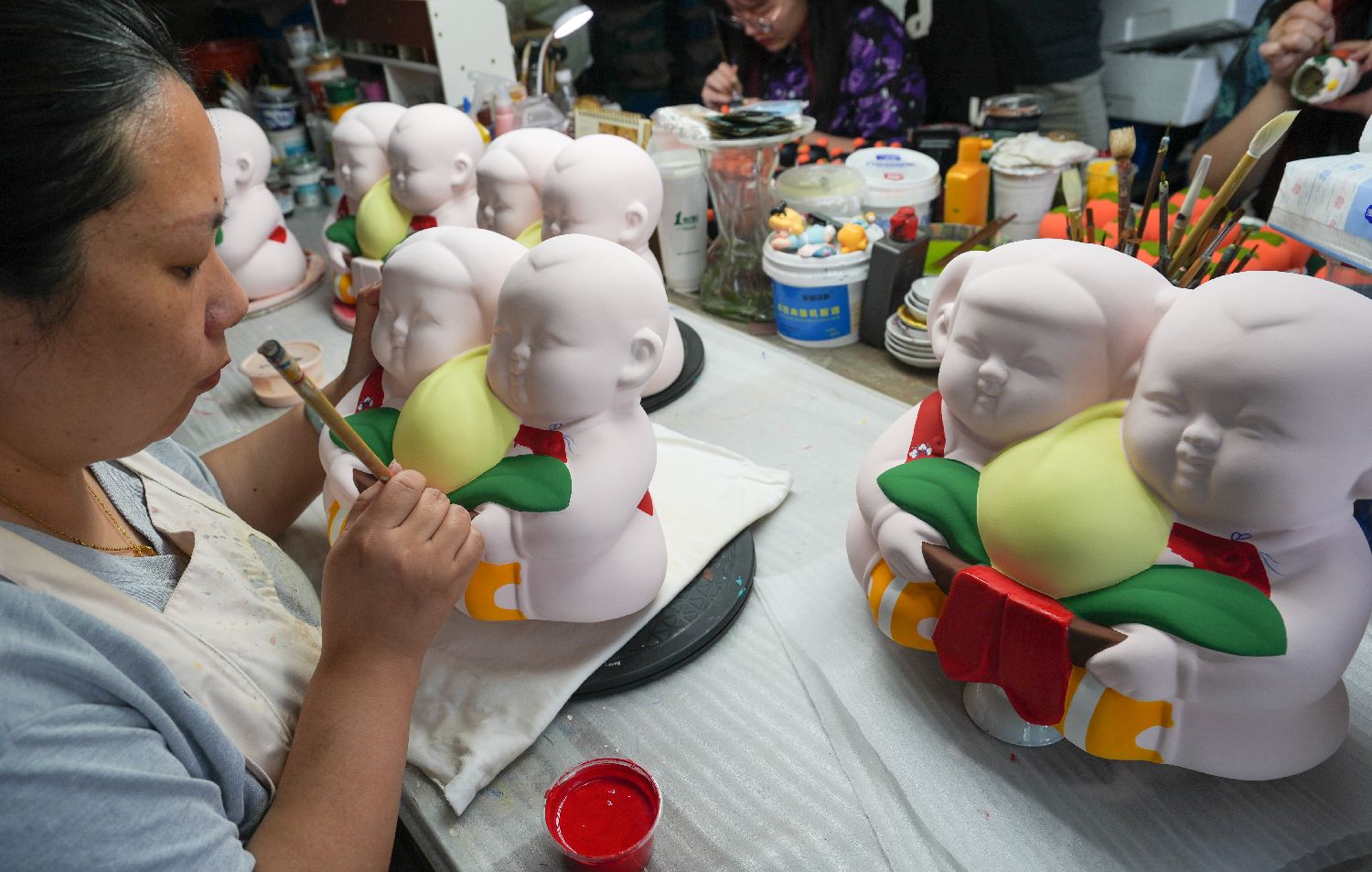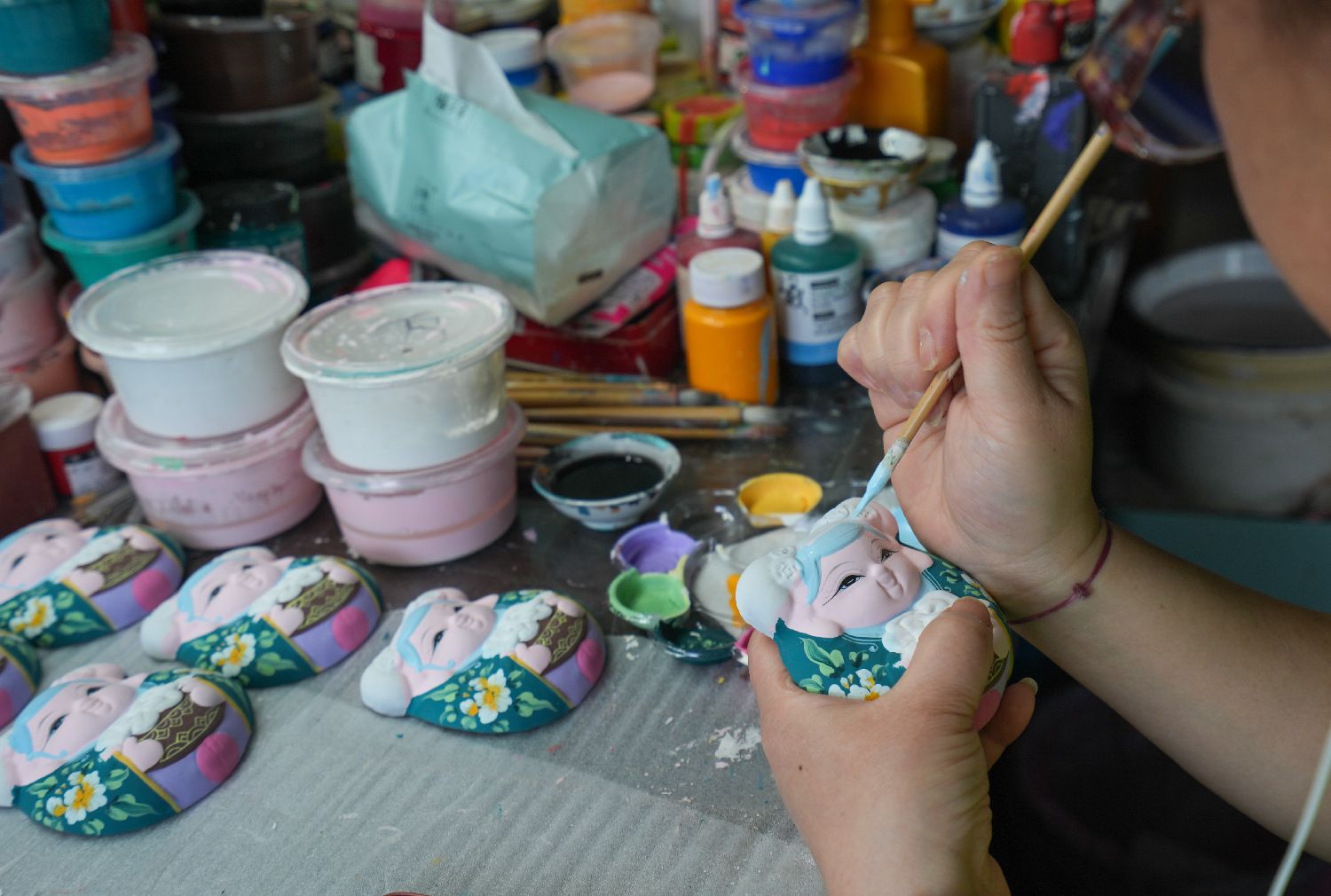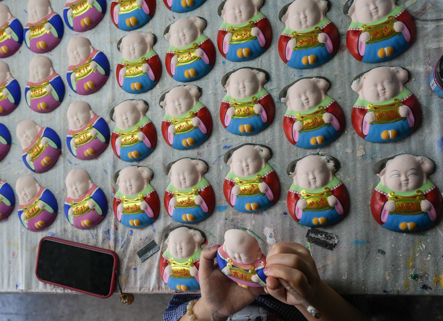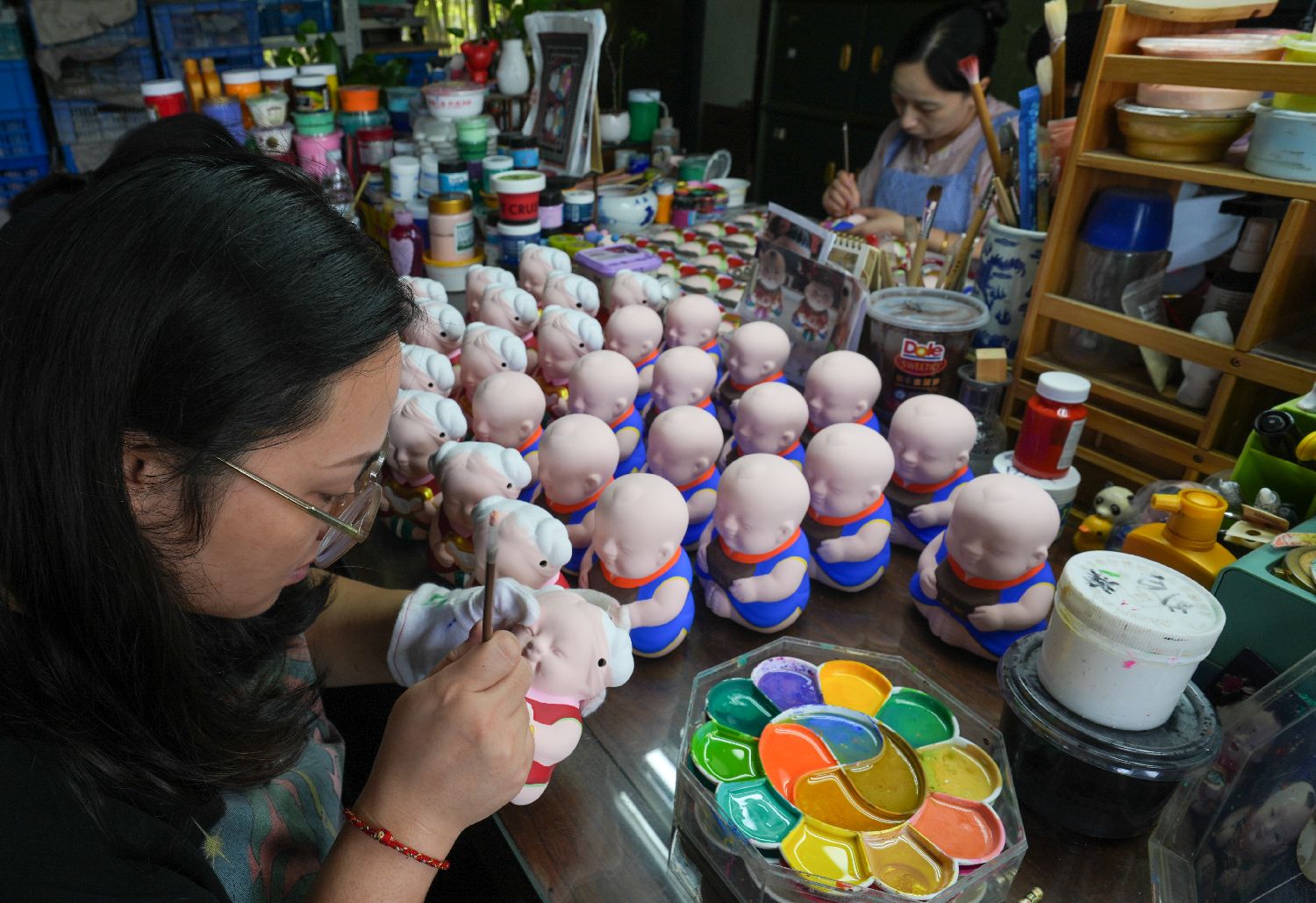 图为9月10日,无锡惠山泥人厂的工作人员在制作泥人“阿福”。泥塑(惠山泥人)是第一批中国国家级非物质文化遗产项目。(图片来源:本文图片均自新华社)