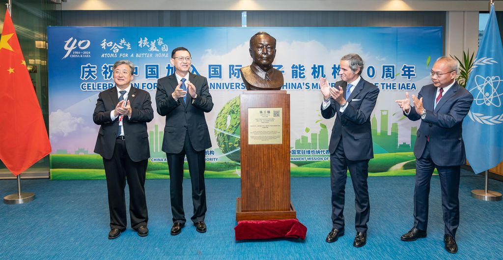 今年(2024年)是中国加入国际原子能机构40周年。中国作为国际原子能机构指定理事国和第二大技术合作贡献国,40年来与国际原子能机构建立了全方位、多层次合作,为全球核领域安全治理和发展合作作出了重要贡献。在此之际捐赠中国杰出核科学家钱三强先生铜像,旨在彰显中国对国际原子能机构“原子用于和平与发展”宗旨的支持,以及中国科学家对人类原子能事业发展的贡献。