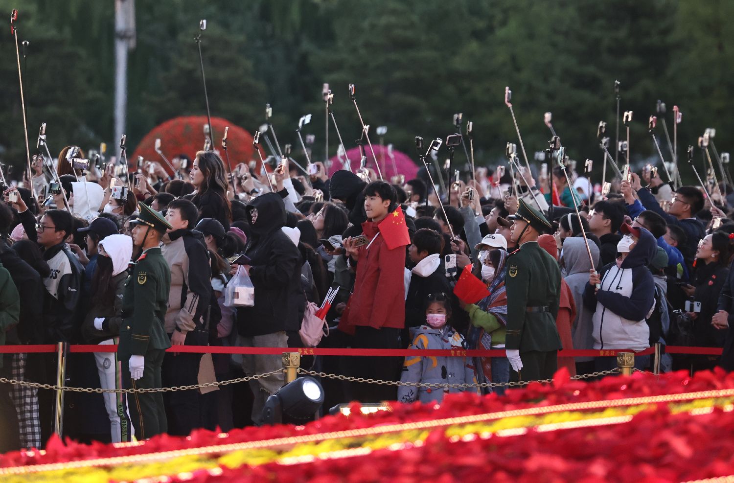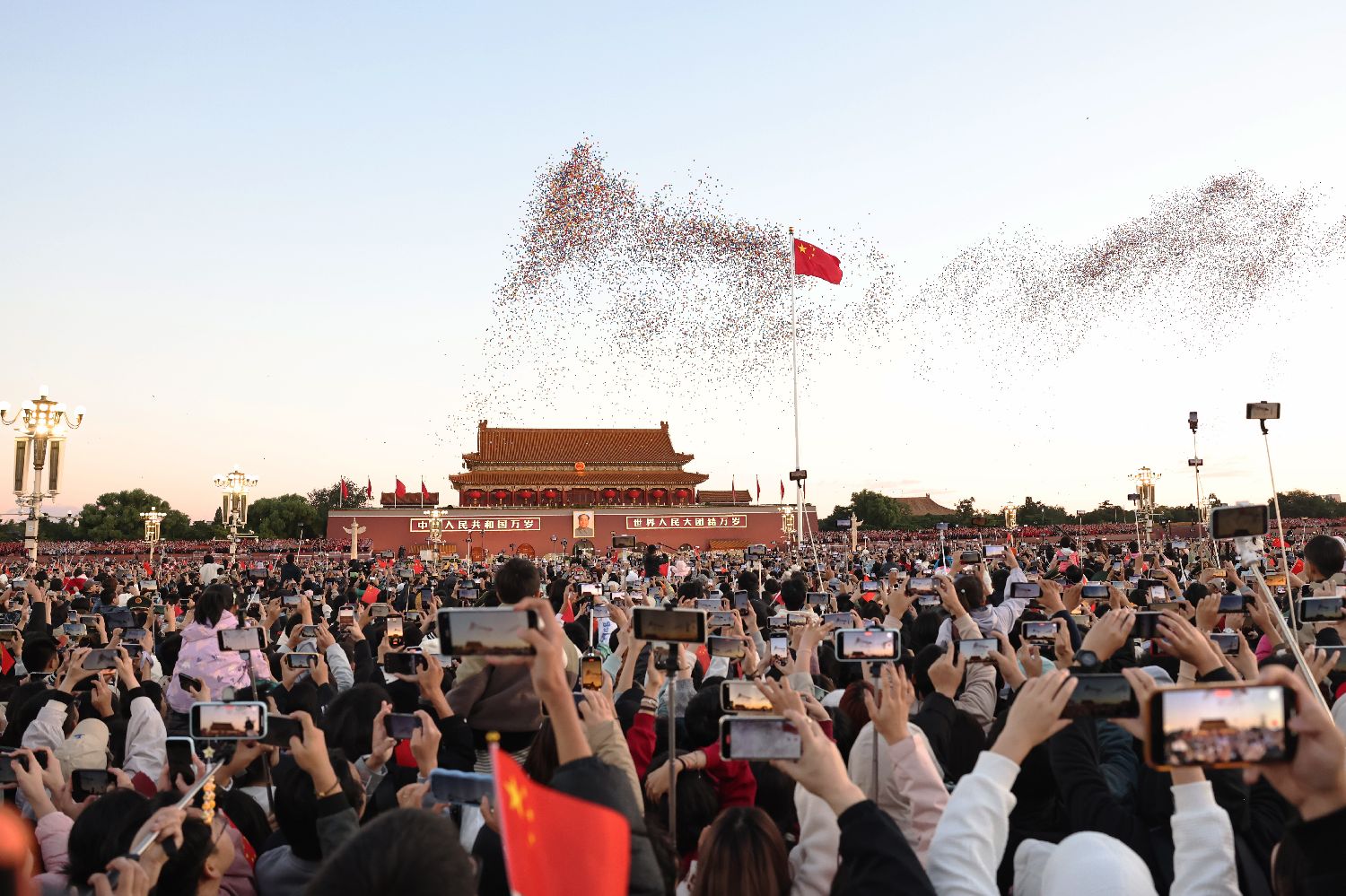10月1日,新中国成立75周年,天安门广场举行2024年国庆升国旗仪式,12.3万名来自海内外游客齐聚天安门广场,记录下这一时刻。