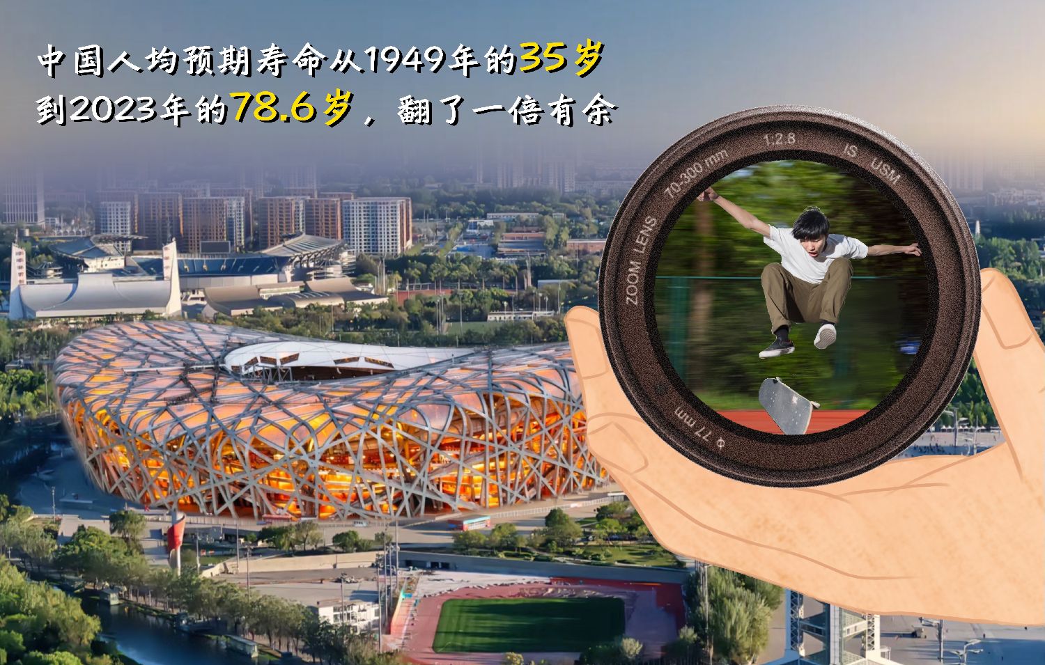 1952年,“发展体育运动,增强人民体质”成为中国体育事业的口号。改革开放后,踏着时代的激流,人们的日子富足起来,运动健身意识逐渐增强。2008年,北京奥运会进一步激发了全民健身的热情。2009年,每年的8月8日被确立为“全民健身日”,鼓励全民走向运动场。如今,中国经常参加体育锻炼的人群超过5亿,各地持续打造“15分钟健身圈”,截至2023年底共有体育场地459.27万个,体育场地面积40.71亿平方米。“村超”“村BA”等民间体育赛事活动火爆出圈。
