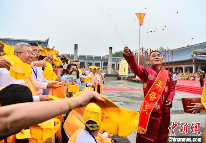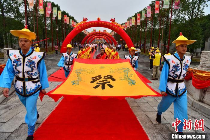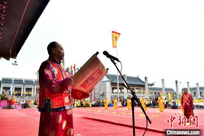 宁化石壁客家祖地先后被授予海峡两岸交流基地、中国华侨国际文化交流基地等称号。图为祭祀仪式在位于石壁的客家祖地举行。