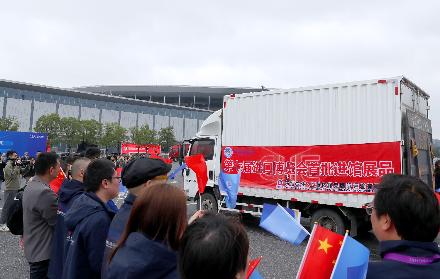 10月22日,第七届中国国际进口博览会首批展品进馆仪式在国家会展中心(上海)举行。来自食品展区、医疗器械及医药保健展区和汽车展区的五家展商的展品首批进馆,第七届进博会展区搭建布置工作全面展开,布展工作有序推进。