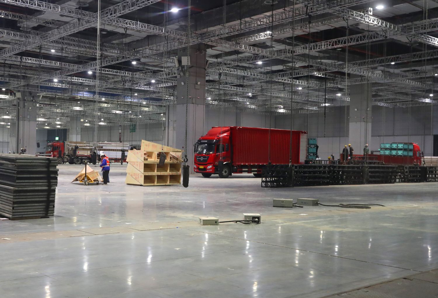 10月22日拍摄的国家会展中心(上海)的进博会布展搭建现场。