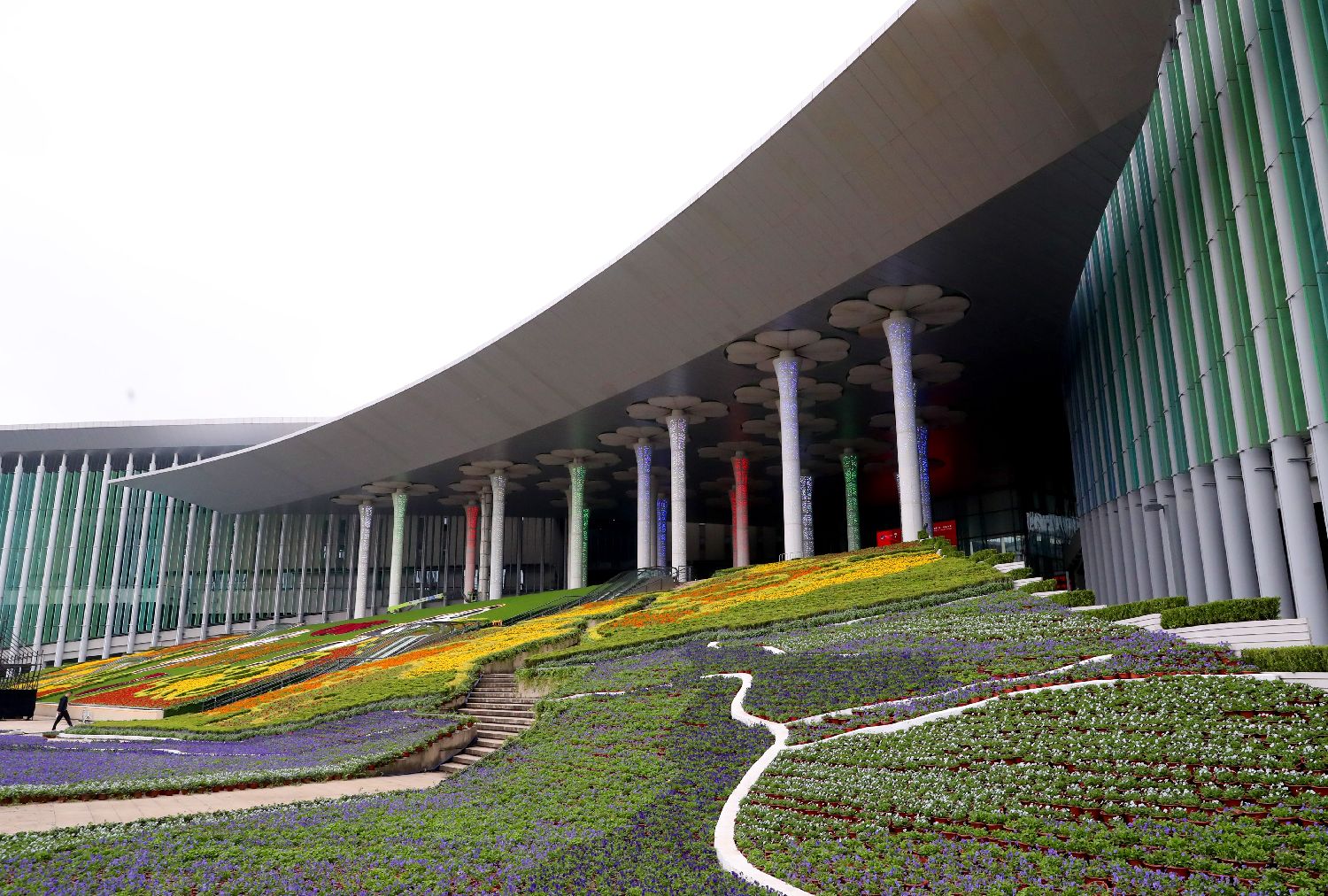 10月22日拍摄的国家会展中心(上海)南广场花坛装饰。