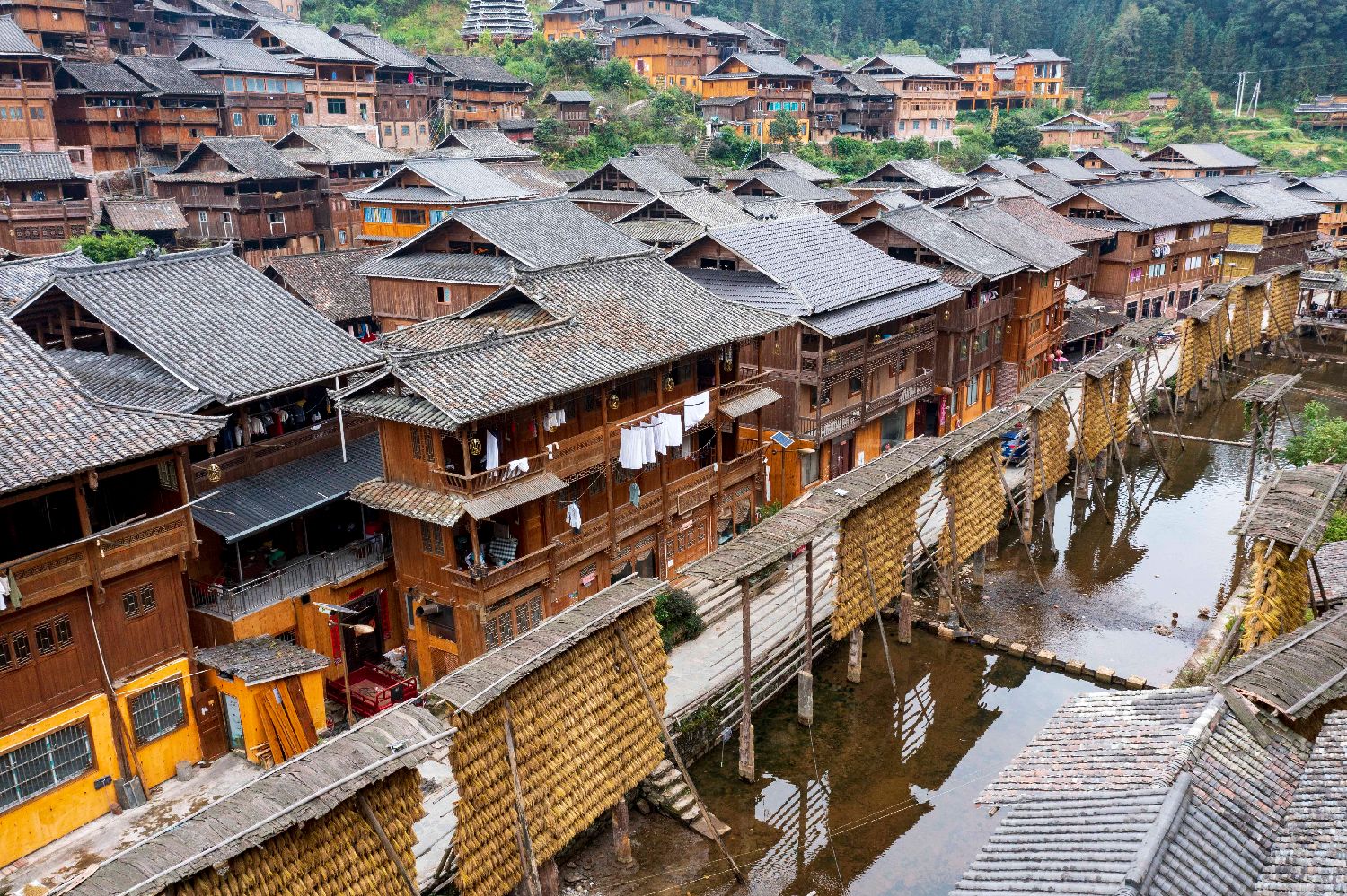 这是10月21日在贵州省从江县高增乡占里村拍摄的“晒秋”禾晾架(无人机照片)。(图片来源:本文图片均据新华社)