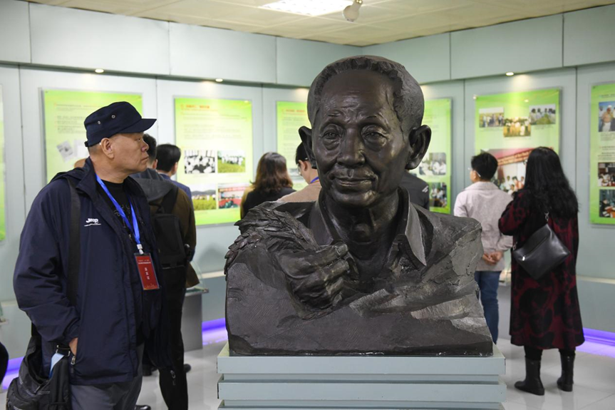 10月28日,华媒代表在湖南杂交水稻研究中心参观袁隆平生平展。
