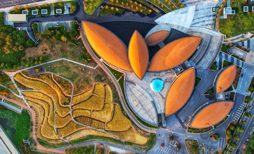 俯瞰隆平水稻博物馆,宛若秋天里一串饱满的稻穗。