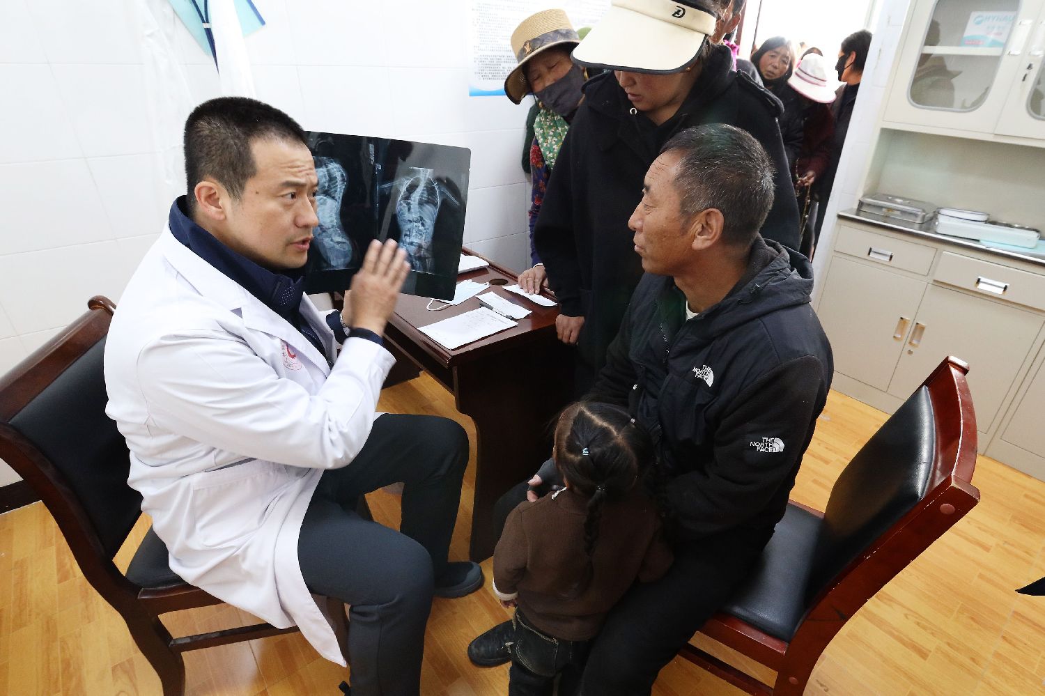 10月28日,四川阿坝县安羌镇,中国医学科学院北京协和医院骨科主任医师庄乾宇义诊中。(图片来源:中新社)
