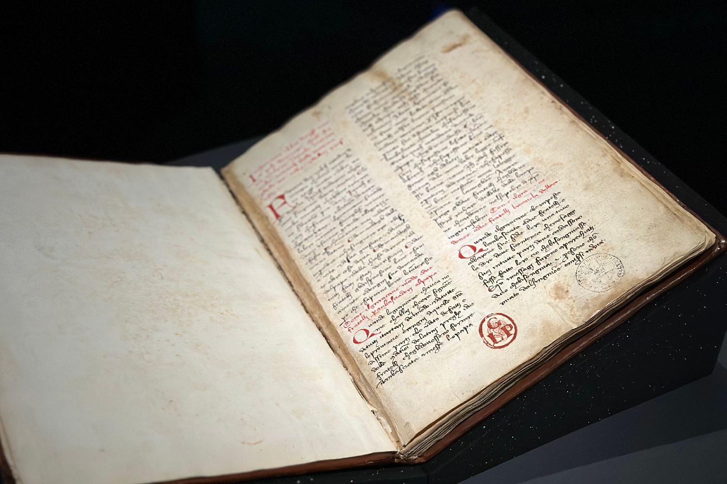 11月3日,《马可·波罗游记》托斯卡纳语抄本在上海图书馆东馆展出。(图片来源:本文图片均来自中新社)