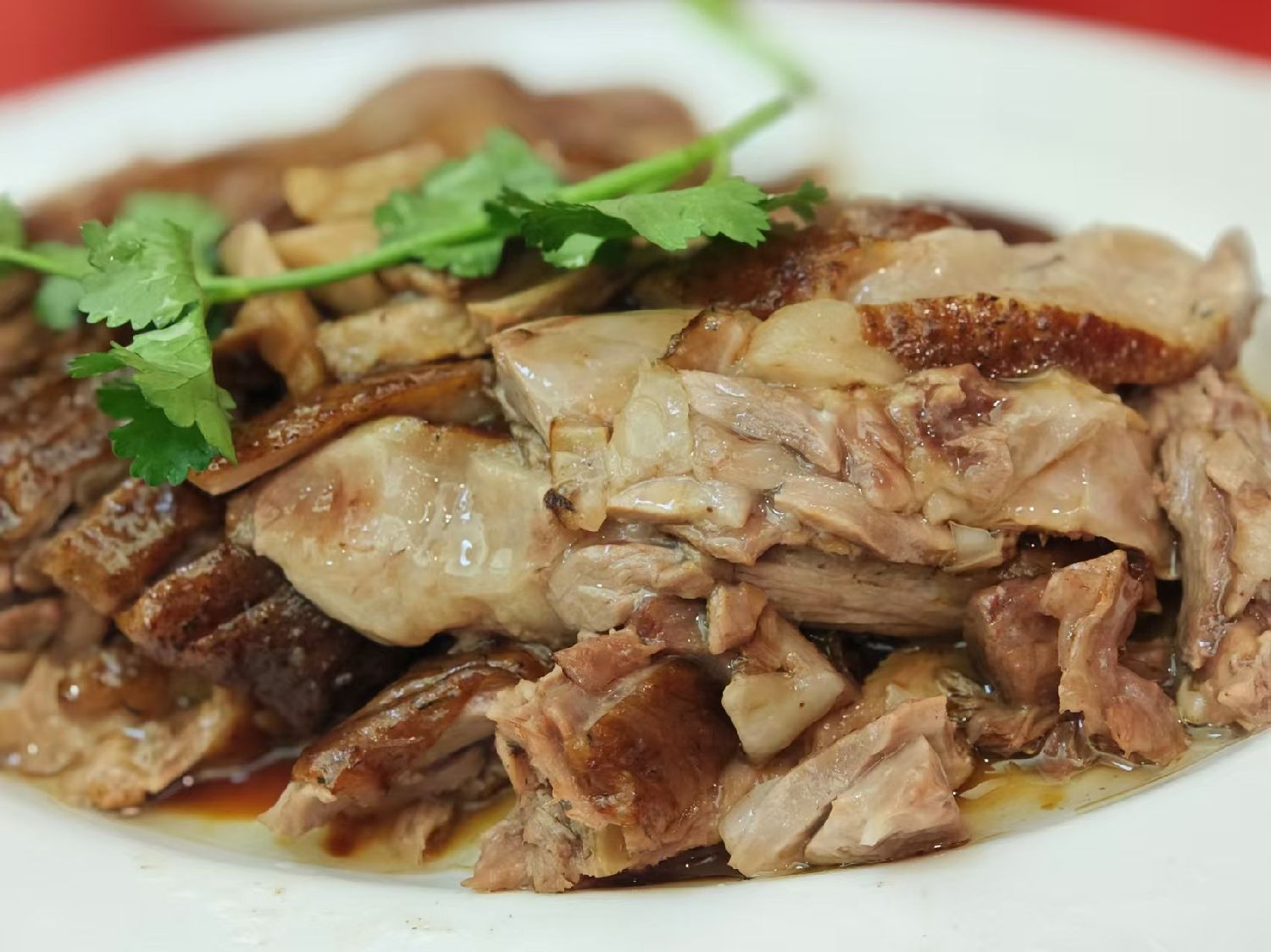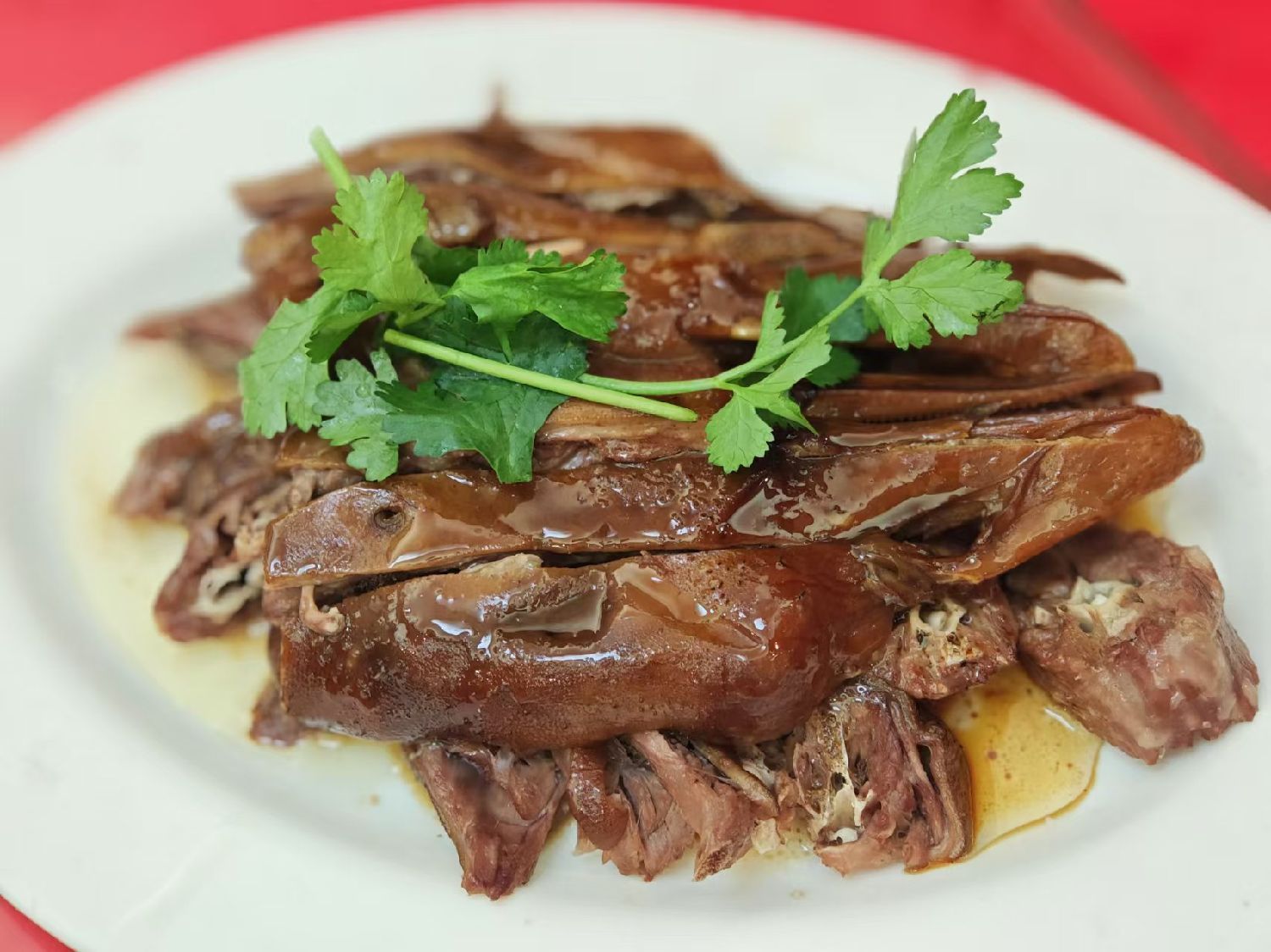 鹅肉主打一个紧实。一般卤货为入味多以草绳丝网束缚以防卤品脱形。澄海卤鹅因反复吊汤,温度起起伏伏,肉质紧凑不散,还入味。