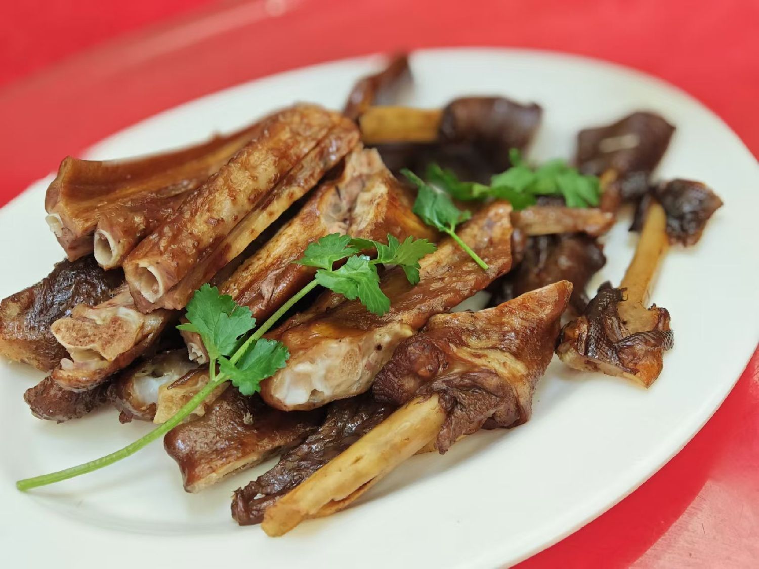 鹅头卤香入髓了,以齿叩问鹅头薄骨,有味析出有味蛰存,胶感饱满,爽利无黏牙之感,鹅脖肉有丝络而不纠缠,确与鹅之其他部位口感迥异,但不宜多,一两块足矣。