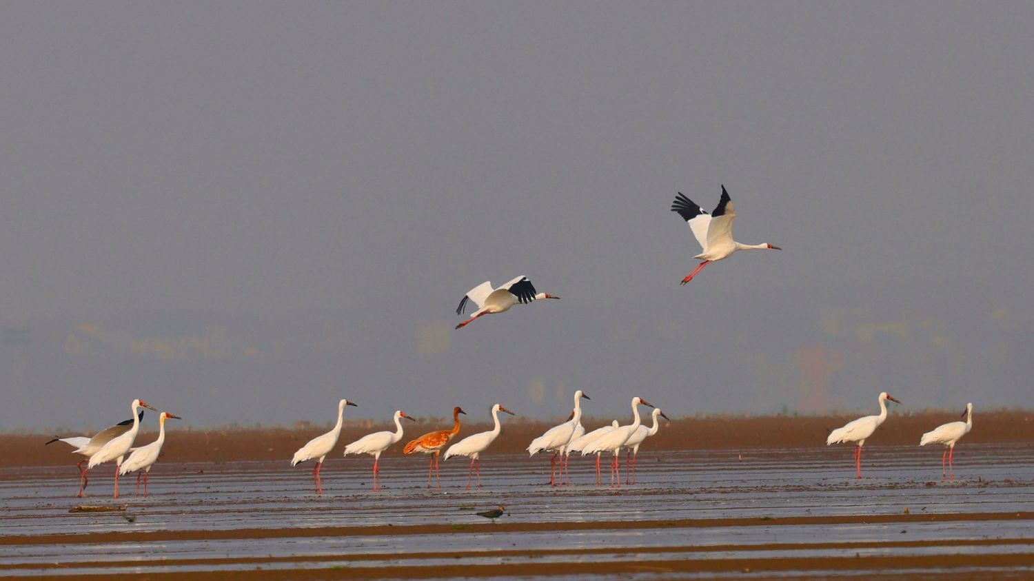 首批43只越冬白鹤飞抵江西鄱阳湖自然保护区