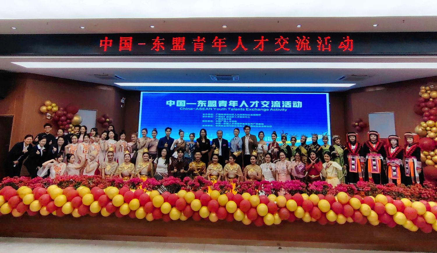 11月7日,在广西师范大学,中国—东盟青年人才交流活动与会嘉宾合影留念。(图片来源:中新社)