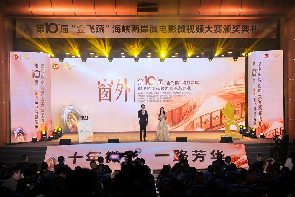 第十届“金飞燕”海峡两岸微电影微视频大赛颁奖典礼17日晚在武汉举行,来自两岸的青年大学生、影视爱好者和专业影视团队等1000余位代表,见证“金飞燕”各项获奖名单揭晓。
