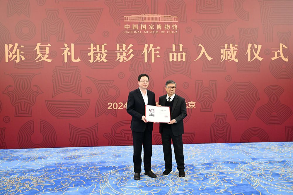 “陈复礼摄影作品入藏仪式”18日在北京举行。香港摄影家陈复礼先生的子女将86件陈复礼亲笔签名的摄影作品无偿捐赠给中国国家博物馆。