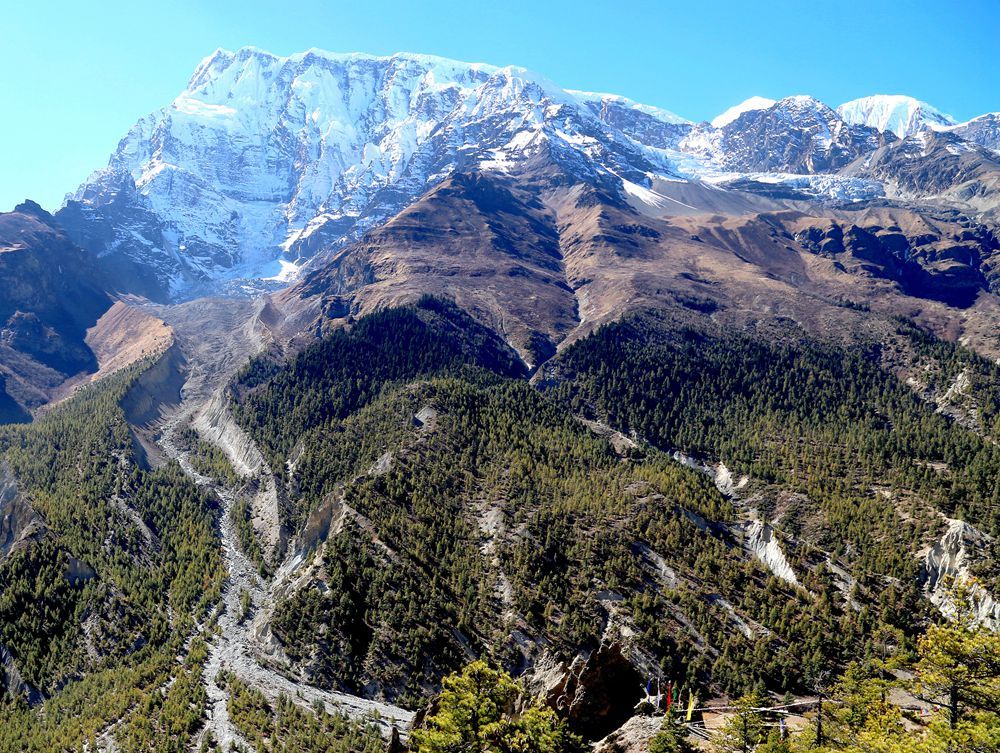 北京时间11月18日傍晚,中国科学院青藏高原研究所团队关于气候变化对喜马拉雅山脉影响的研究成果论文在国际专业学术期刊《自然—植物》上线发表。图为清晰显示的喜马拉雅山脉高山树线。(图片来源:中国科学院青藏高原研究所供图)