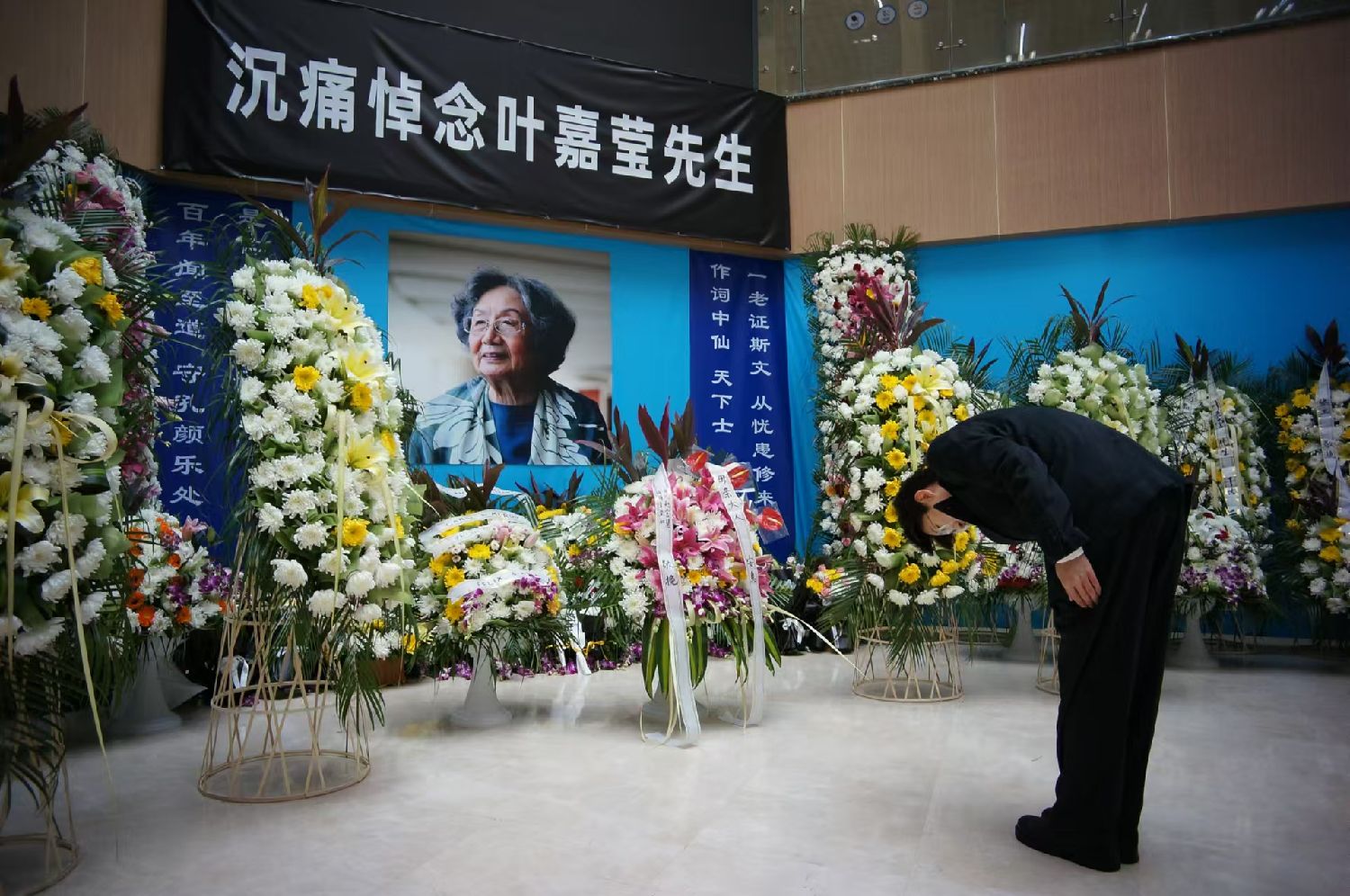 11月25日,师生来到天津南开大学叶嘉莹先生灵堂鞠躬致敬,追思吊唁。(图片来源:本文图片均来自中新社)