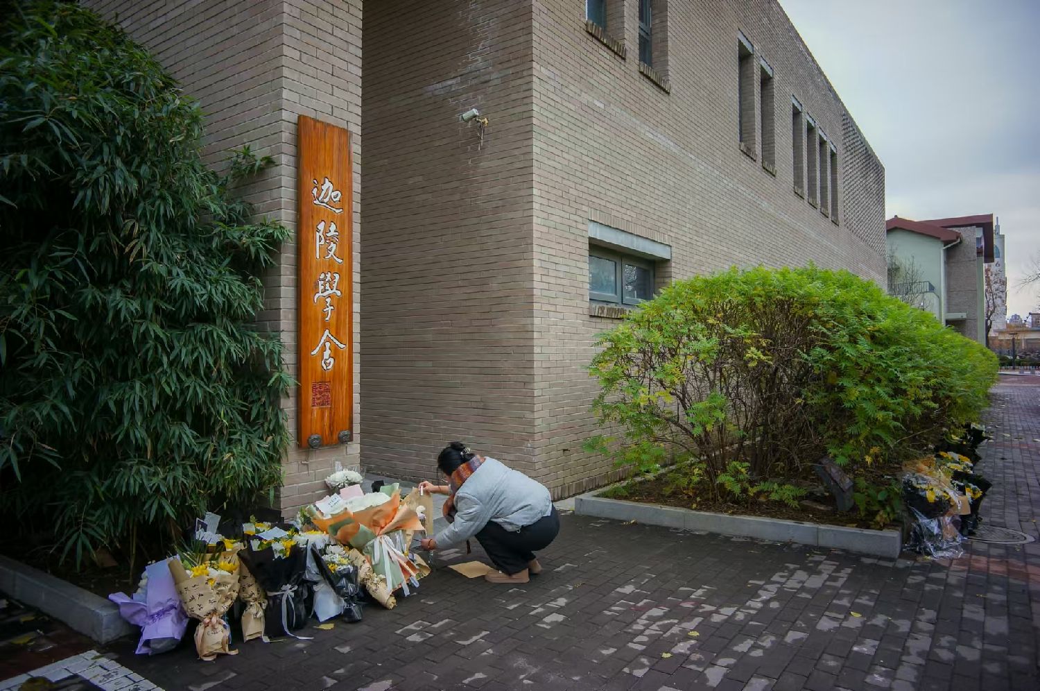 11月25日,天津南开大学,师生自发前来将一束束鲜花摆放在迦陵学舍门前,送别叶嘉莹先生。