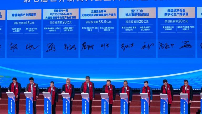 11月28日,第七届世界浙商大会重大项目签约仪式现场。(图片来源:中新社)