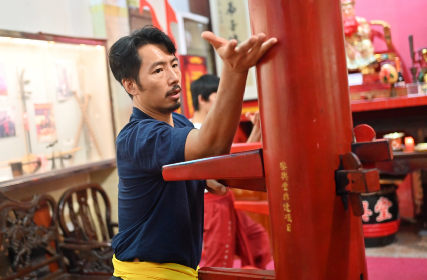 “叶问曾说咏春拳来源于红船戏班,2019年我找到銮舆堂,这里的红船木人桩包含了咏春拳所有动作,而且还有108式口诀,每个动作之间都有连贯性,非常适合教学。”澳门五军虎粤剧行当协会理事长李健豪近日接受中新社采访时说。