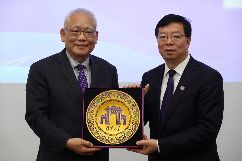 4日,大陆高校师生赴台访问团到新竹清华大学参访交流。图为北京清华大学校务委员会主任邱勇(右)和新竹清华大学资深副校长戴念华(左)。(图片来源:马英九文教基金会供中新社图)