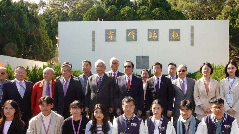 4日,两岸清华师生共同到新竹清华大学校园内的梅贻琦墓园拜谒。(图片来源:中新社)