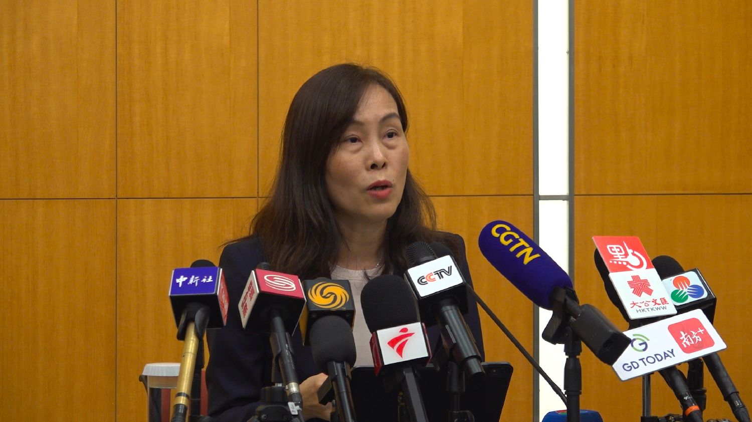 澳门特区政府社会文化司司长欧阳瑜接受中新社等媒体采访。(图片来源:中新社)